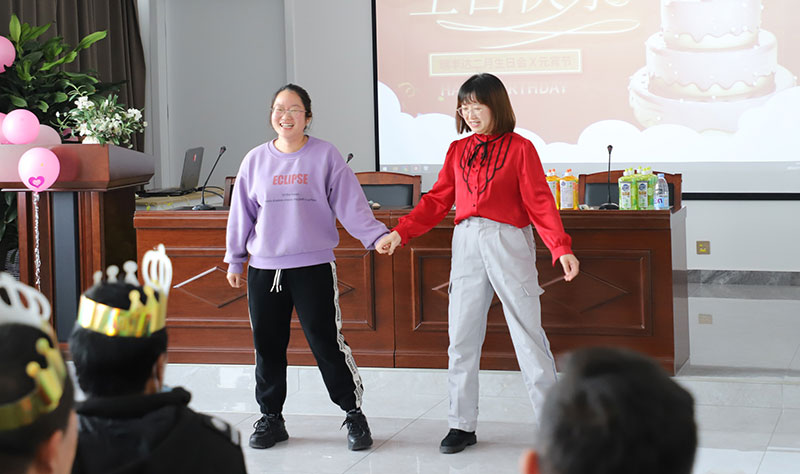 生日會上員工們齊聚一堂,一同唱起生日歌,許愿望,吹蠟燭,吃蛋糕,共同分享著這份濃濃的喜悅。一個個互動小游戲進(jìn)一步增進(jìn)了員工之間的感情,大家用歡樂凝結(jié)力量,用笑聲感恩公司,盡情享受屬于自己的幸福時光。