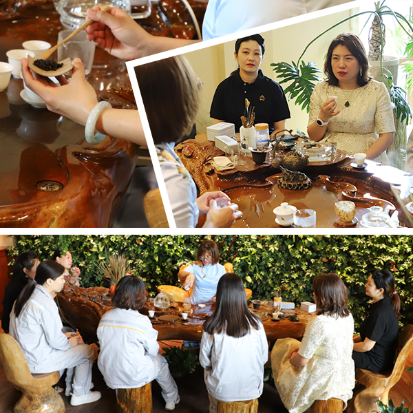 在王娟王總的帶領(lǐng)下,大家紛紛學(xué)習(xí)到了茶的沖泡技巧。從執(zhí)壺、持杯、聞香再到斟茶、品湯、致謝,一舉一動之間,展示出女性優(yōu)雅端莊的氣質(zhì),大家細細地互相品嘗著芳香的茶水,沉浸在優(yōu)美的意境之中,現(xiàn)場暖意融融,茶香馥郁芬芳。