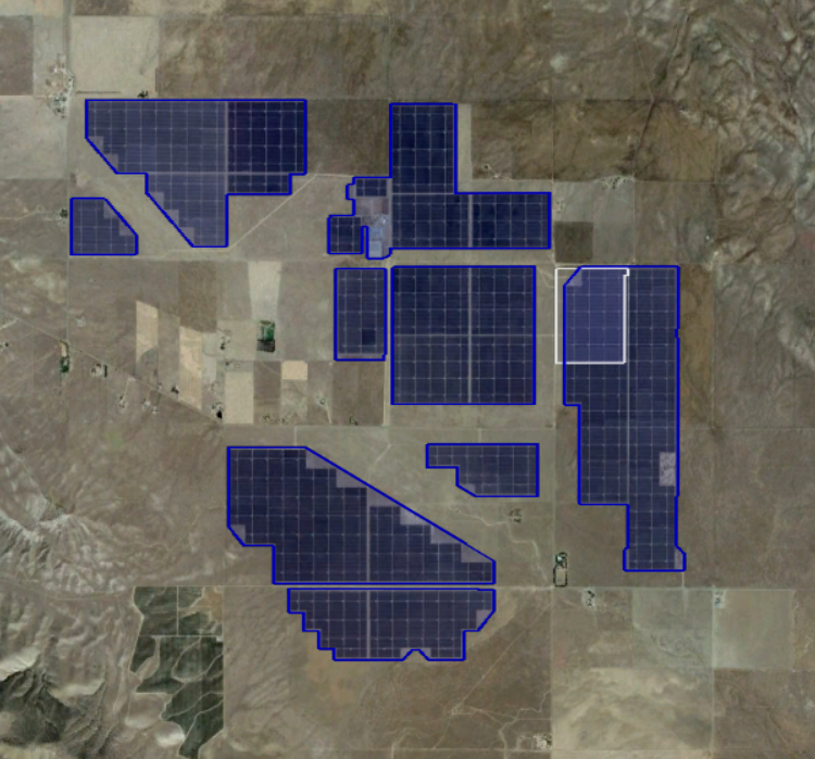 ? ? ? 美國這次排名最高的是第 4 位(之前排名第 6 位的 Solar Star 現在降至第 10 位)。作為美國最早的公用事業規模太陽能發電廠之一,銅山項目的第一階段于 2010 年首次由 Sempra Energy 連接。當最南端的第五階段于今年 3 月投產時,該工廠的總容量達到 816 MW。 它位于內華達州的埃爾多拉多谷,位于博爾德城和探照燈之間,距離拉斯維加斯不遠的東南部,圍繞著 Acciona 的內華達太陽能一號 CSP 項目(以紅色標出)。?