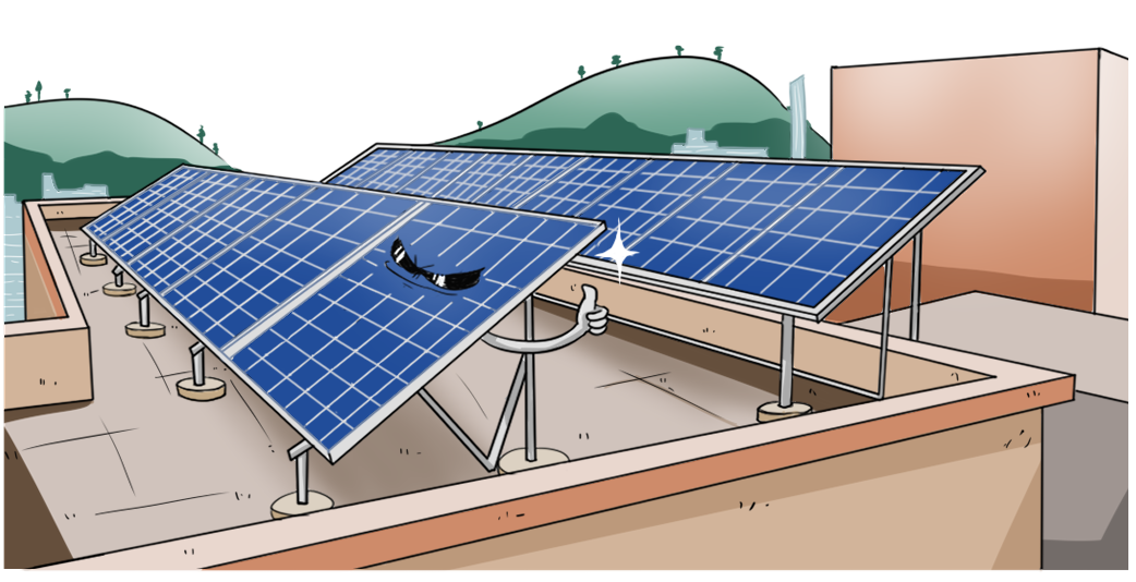 安裝光伏發電裝置,利用太陽能,產生電量,實現電力自發自用,助力綠色環保