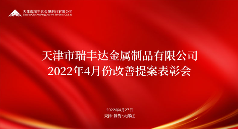 為營造精益求精、不斷創新的改善氛圍,進一步激發員工參與熱情,4月27日,天津市瑞豐達金屬制品有限公司4月改善提案表彰會在三樓報告廳舉行,公司領導張總、公司中層管理人員、標準化咨詢組老師及生產車間全體員工參加本次會議。