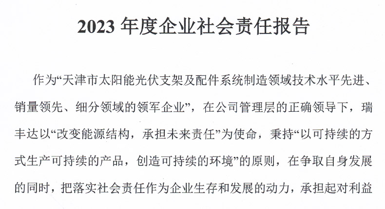 作為“天津市太陽能光伏支架及配件系統(tǒng)制造領(lǐng)域技術(shù)水平先進銷量領(lǐng)先、細分領(lǐng)域的領(lǐng)軍企業(yè)”,在公司管理層的正確領(lǐng)導(dǎo)下,瑞豐達以“改變能源結(jié)構(gòu),承擔(dān)未來責(zé)任”為使命,